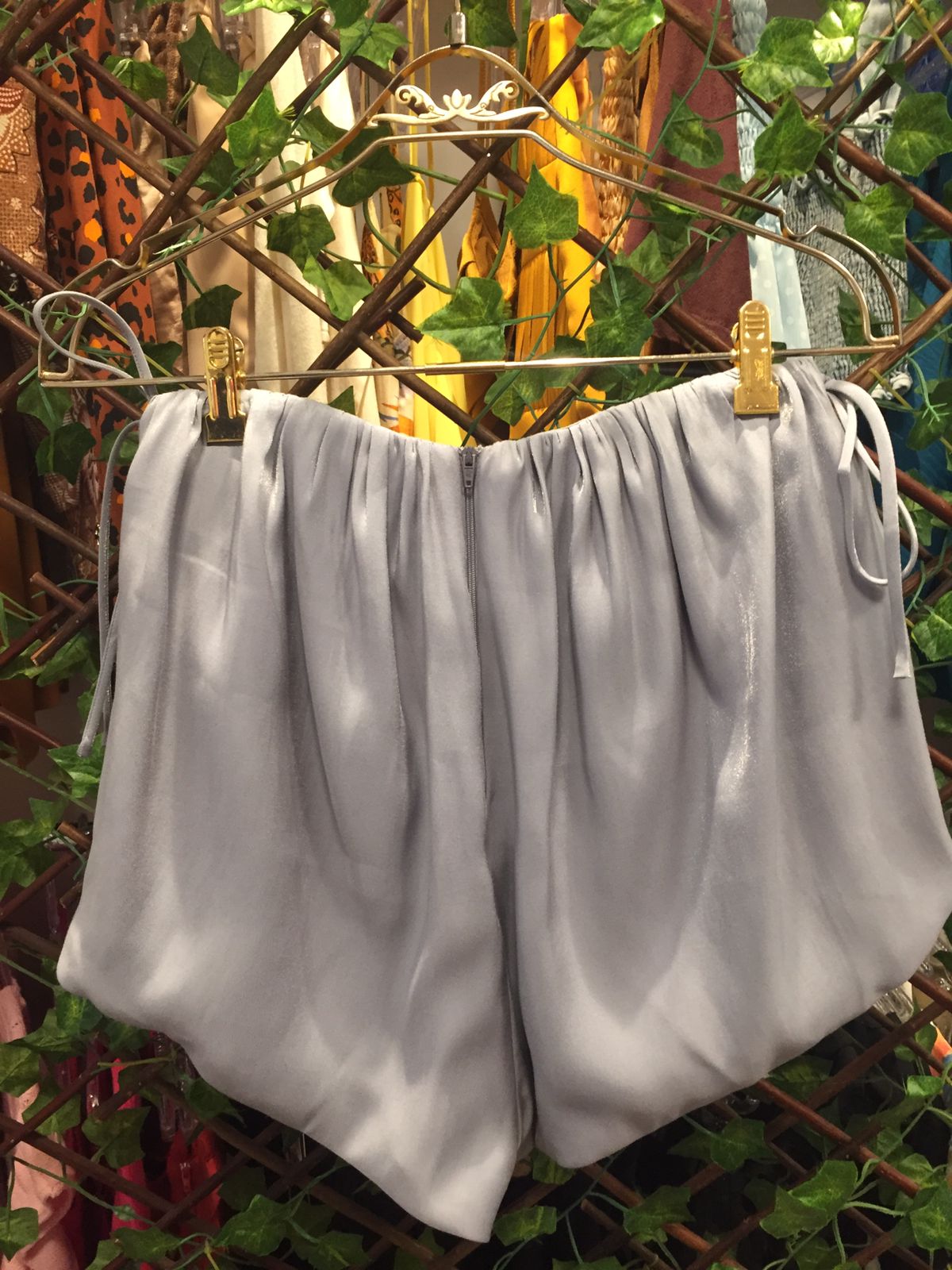 Drapping com um volume delicado compõem nosso delicado Short Halu, produzido no tecido Victoria twill que possui um foil com um brilho discreto e lindo, amarração lacinho spaghete na lateral.