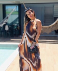 VESTIDO LONGO FRENTE ÚNICA ESTAMPADO
